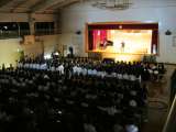 実行委員長の開会の言葉で開幕です。続いて校長先生の話、演奏上の注意です。