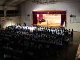 今回の担当は1年生。全体確認の後、椅子を並べ保護者席や来賓席を作っていきます。