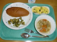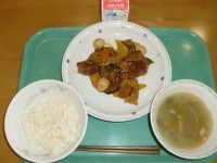 ●本日の献立●麦ごはん 牛乳 酢豚 きのこと青菜のスープ●主な給食食材と産地●米...