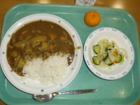 ●本日の献立●カレーライス 牛乳 野菜の甘酢かけ くだもの●主な給食食材と産地●...