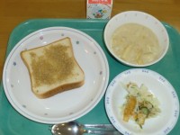 ●本日の献立●ツナコーンチーズトースト 牛乳 ポークシチュー キャベツサラダ●主...