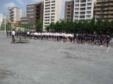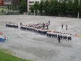 昨日に引き続き学年練習です。よく晴れた中、校庭での実施です。