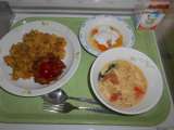 ●本日の献立● カレーピラフ 牛乳 大豆とコーンのフリッター フルーツヨーグル...