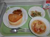 ●本日の献立● ミルクパン 牛乳 コロッケ じゃこと豆のサラダ 卵スープ ●...