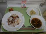 ●本日の献立● 豚と豆もやしの中華ご飯 牛乳 切干しだんこんのシャキシャキサラ...