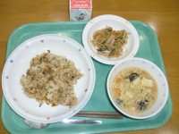 ●本日の献立●中華丼 牛乳 大豆の磯揚げ ぶどうゼリー●主な給食食材と産地●米(...