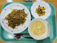 ⚫︎本日の献立⚫︎ソース焼きそば 牛乳 中華風コーンスープ お豆かりんとう⚫︎主...