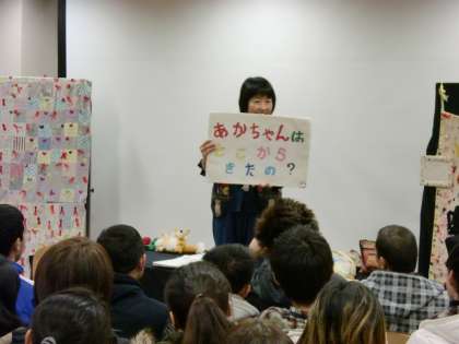 からだのこと、いのちのこと、こころのこと、HIV感染症のこと、とゼスチャー混じり、手話混じりの楽しいお話し、人形劇、歌で教えていただきました。