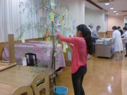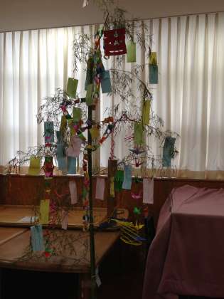 もうすぐ「七夕」です。 夜間学級でも笹飾りを作り、ランチルームに飾りました。