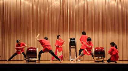 和太鼓部の発表の様子です。魂を揺さぶる音です。