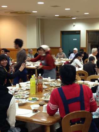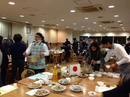 料理が出来上りました。会場(ランチルーム)での、配膳の様子です。