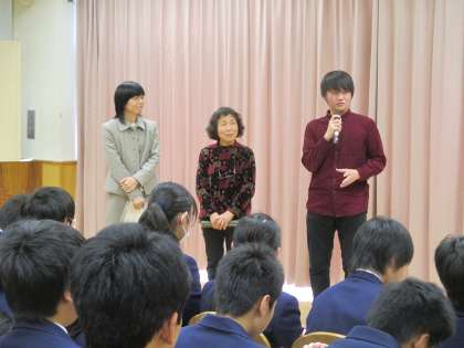 ゲストティーチャー 公開日 2016/02/25 更新日 2016/02/25 できごと 2月24日(水)、ゲストティーチャーとして生徒会の役員が大田区立大森第三中学校を訪問しました。1年生の皆さんに夜間学級の説明や自己の体験談を語りましたが、真剣な表情で真面目に役員の話を聞いて頂くことができました。 大森第三中学校の先生方、生徒の皆さん、有り難うございました。 いいね(0)