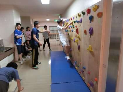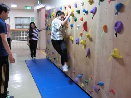 日本語学級に続き、通常学級でも、初めてボルダリングに取り組みました。