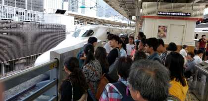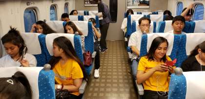 東京駅集合、時間前に集まり出発式の後新幹線に乗りました。みんな元気です。