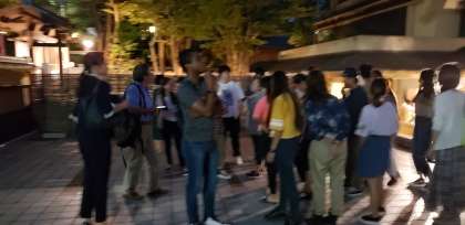 夕食後は、弥栄会館ギオンコーナーにて、茶道、華道、筝、雅楽、狂言ん、京舞、文楽を鑑賞しました。言葉の意味は、よくわからなくとも楽しさ美しさは、感じとることができました。