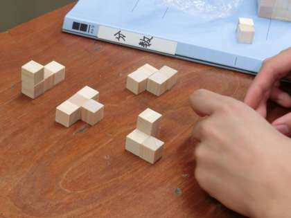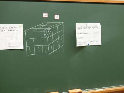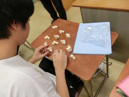 立方体の組み合わせパズルを利用して、操作的活動を取り入れた空間図形の学習をしました。生徒それぞれの思考過程がよく表れています。