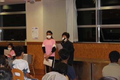 「みんなで、より良い三宿中学校夜間学級を作りましょう」という生徒会長の呼びかけがありました。