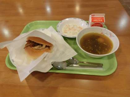 6月29日(月) きんぴらフィッシュバーガー、わかめスープ、フルーツヨーグルト、牛乳