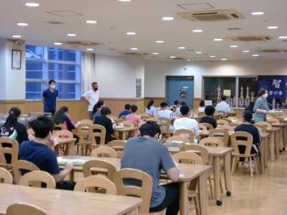 1学期に続いて、生徒は同じ方向を向いて、座席は、距離を置いて座ります。