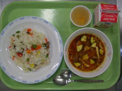 パプリカバターピラフ・トマトきのこスープ・ももゼリー