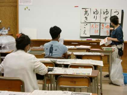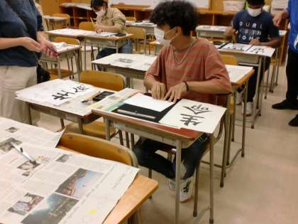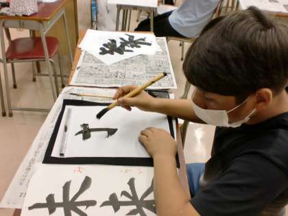 10月13日(火) 全員が初めての書道体験です。 好きな言葉を選び、何度も書きました。