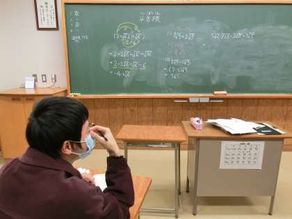 通常学級 数学 公開日 2021/01/12 更新日 2021/01/12 できごと 1月12日(火) 通常学級の数学は、習熟度別に学習しています。 今日は、いろいろな関数を学んでいるクラス、変化の割合を学んでいる生徒、連立方程式を学んでいる生徒、根号のついた式の展開について学んでいるクラスがありました。 繰り返し学習することで、学習内容の理解が深まります。 いいね(0)