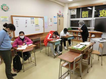 今日は、「作文」です。3学期は今までの総まとめの時期です。日本語の表現もまだまだ学習が必要ですが、学んだことを十分に活用して、日本語で考え、自分の思いを相手に伝えるための文を作っています。