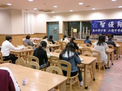 手洗い、手のアルコール消毒、換気を行っています。6人掛けのテーブルは、同じ方向を向いての2人掛けでの対応です。