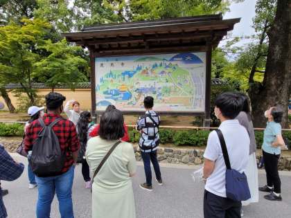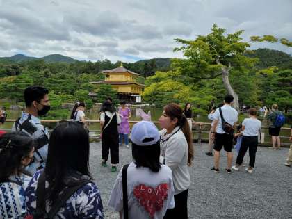 【9月17日(土)】金閣寺(きんかくじ) 見学のポイントをガイドさんに教えてもらってから見学です。