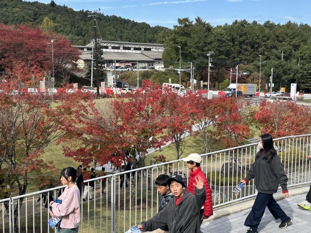 入館前に最後の移動教室最後となるクラス写真を撮影しました。