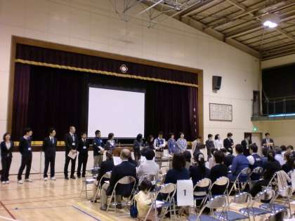5月7日(火)25年度翠と溪の学び舎開校式・小中合同学校協議会が開催されました。尾山台中、尾山台小、玉堤小校長よりのあいさつから始まり、協議会の皆様へ、3校の教員を紹介いたしました。今年度の活動内容の説明のあとは、小グループに分かれ、「地域で子どもを育てる」をテーマに意見交換会を行いました。様々な意見が出た中で、多かったのは、「あいさつ」の話題でした。とてもよくあいさつをする子どもたちへのおほめの言葉が多く嬉しいことでした。生徒の皆さん、これからもあいさつを忘れずに。