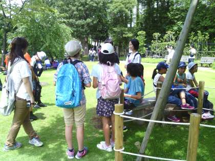 翠と溪の学び舎では、7月6日土曜日、小学校6年生と中学生ボランティアで等々力渓谷清掃を行いました。今年も等々力渓谷保存会、地域、PTAの皆様に見守られての活動でしたが、これまでと変わったことがあります。等々力の歴史を語り継ぐ会作成のとどろきお散歩マップをもとに渓谷周辺の史跡見学です。保存会の方に説明していただいたことは知らないことばかりでした。また終了後、芝生広場では小中学生の交流の 場がありました。小学生の質問に中学生が答える姿が微笑ましかったです。 ご協力頂いた皆様にお礼申し上げます。