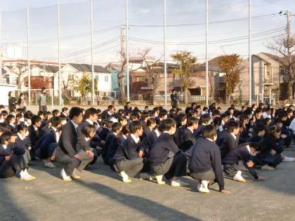 毎月1回行っている避難訓練ですが、今月12月は一部の防火シャッターを閉めて、火事を想定した訓練でした。集合するのにかかった時間は2分56秒。整然と避難ができていました。