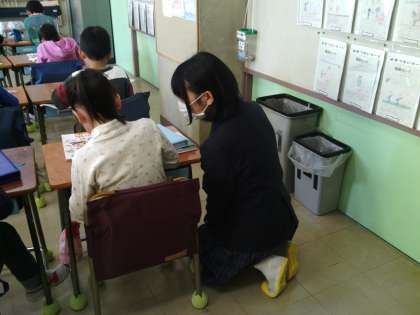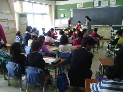 2月10日、9人の3年生が尾山台小学校と玉堤小学校を訪問し、小学校1年生の授業のお手伝いをしました。