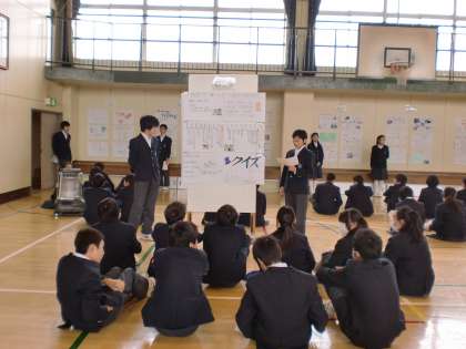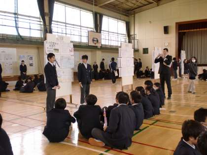 2月13日(金)2学年の職場体験発表会が行われました。昨年11月に実施した職場体験をポスターセッションの形で発表しました。発表はどのグループもしっかりとした発表で、クイズを交えるなどの工夫したものもありました。5校時は1年生が見学しました。
