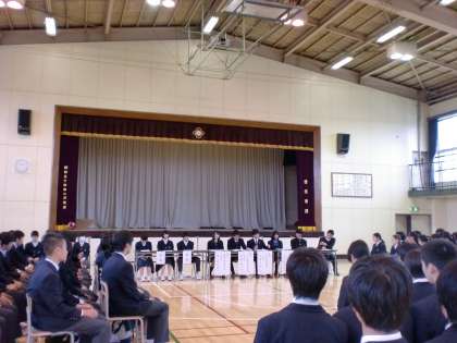4月21日月曜日、3年生の総合的な学習の時間は「卒業生の話を聞く会」でした。卒業生の現在高校1年生と3年生5名に来校してもらい、中学3年生として進路を選択するにあたって役に立つ経験談などを話してもらいました。その後の質疑応答では、卒業生に向けて積極的な質問がでる様子が見られました。今年はこれまでと違い、体育館でのパネルディスカッション形式で行いました。受験生という意識が芽生えたのではないでしょうか。