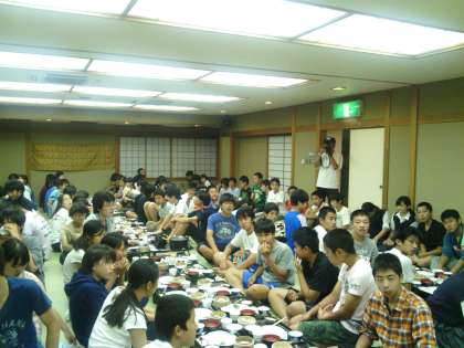 京都の旅館に着きました。夕食も終わりました。皆元気です。