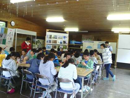 河口湖フィールドセンターでのクラフト体験、ネイチャーガイドウォークが終わりました。これから河口湖畔で昼食をとり、帰途につきます。