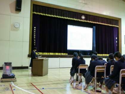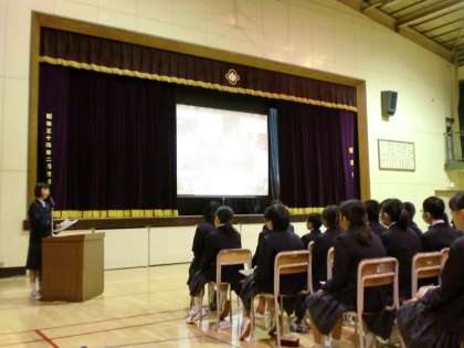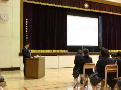 1月10日(土)1年生の総合的な学習の発表会が行われました。各自で調べた職業調べの学級代表のプレゼンテーションと12月の「地域の人の話を聞く会」の報告会、新聞大賞の表彰がありました。どの発表も工夫を凝らした立派なもので、聞いている人もクイズに答えて楽しい発表になりました。ご参観いただいた保護者の皆様ありがとうございました。