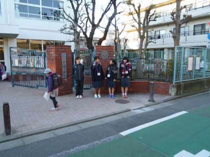 1月13日から16日に翠と溪の学び舎あいさつ運動を行いました。中学生の生徒会役員とボランティア生徒が、尾山台、玉堤の小学校に出かけ、小学生と一緒に登校児童にあいさつをしました。久しぶりに会う、中学生、あこがれの存在になったでしょうか。最終日は、児童の皆さんからお礼のメッセージを頂きました。