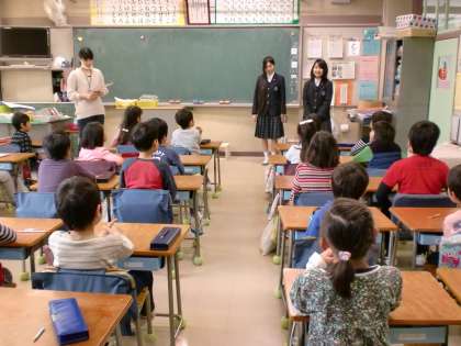 2月24日、昨年から始まった中学生が小学校に行き、児童に勉強を教えたり、先生のお手伝いをする交流がありました。今年は、「中学生が先生」と名付けました。玉堤小学校では、パワーあふれる1年生に尾山台中学校3年生が、圧倒されながらも楽しい時間を過ごしました。、