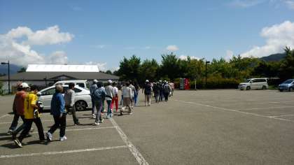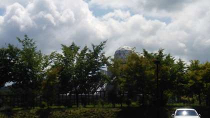 レーダードーム館着。雲は多いですが、さわやかな風、きれいな空気…。これから館内で、富士山の学習です。