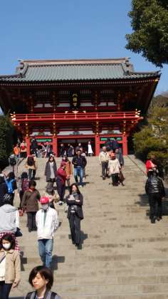 3月4日、二年生は校外学習、いざ鎌倉へ…いまのところ、各班行動は順調です。鶴岡八幡宮にて!