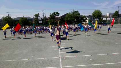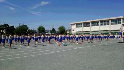 本日、運動会予行を行っています、好天に恵まれ、爽やかは風の吹く中。プログラムを進めています。
