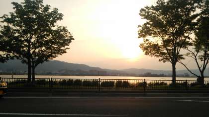 18時過ぎ、1日目の昼間の行程を全て終え、琵琶湖岸のホテルに到着。これから夕食です。