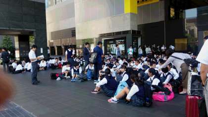 午前中の行動が終わり、京都駅集合。予定時間通りです。生徒諸君、お疲れ様でした。校長からは?全員参加できた。?仲良く和気あいあいできた。課題、この3日間を自分の言葉で学べたことをしっかり表現できるようにしておこう。疲れた、楽しかった、だけでは情けない…と話しました。