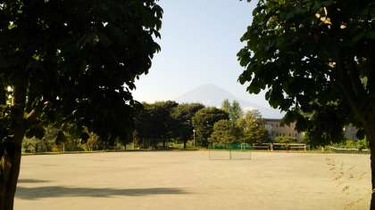 部活合宿、4日目。5時、どんよりだった天候はみるみるうちに快晴、富士山がすそのよりしっかり見えてきました。学園の建物内より