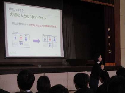 4月8日(土)3時間目にセーフティ教室が行われました。LINE株式会社より講師の先生をお迎えし、「インターネットを使う時に気をつけること、考えること」と題してご講演頂きました。相手の顔が見えないLINEをはじめSNSで発信する際、受け取った側の感じ方が違うことに気づくような、参加型の授業でした。終了後、地域や保護者の方との意見交換会もあり、中学生を見守る大人たちの率直な意見を交換しました。