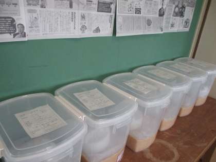 班ごと「品質表示」を作成し、手作り味噌一つ一つに名前をつけました。愛情をもって味噌を育てましょう。