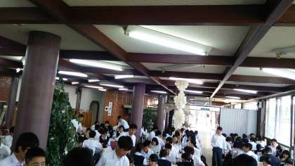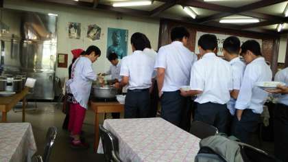 5月27日、法隆寺到着、昼食はカレー食べ放題、皆元気です。